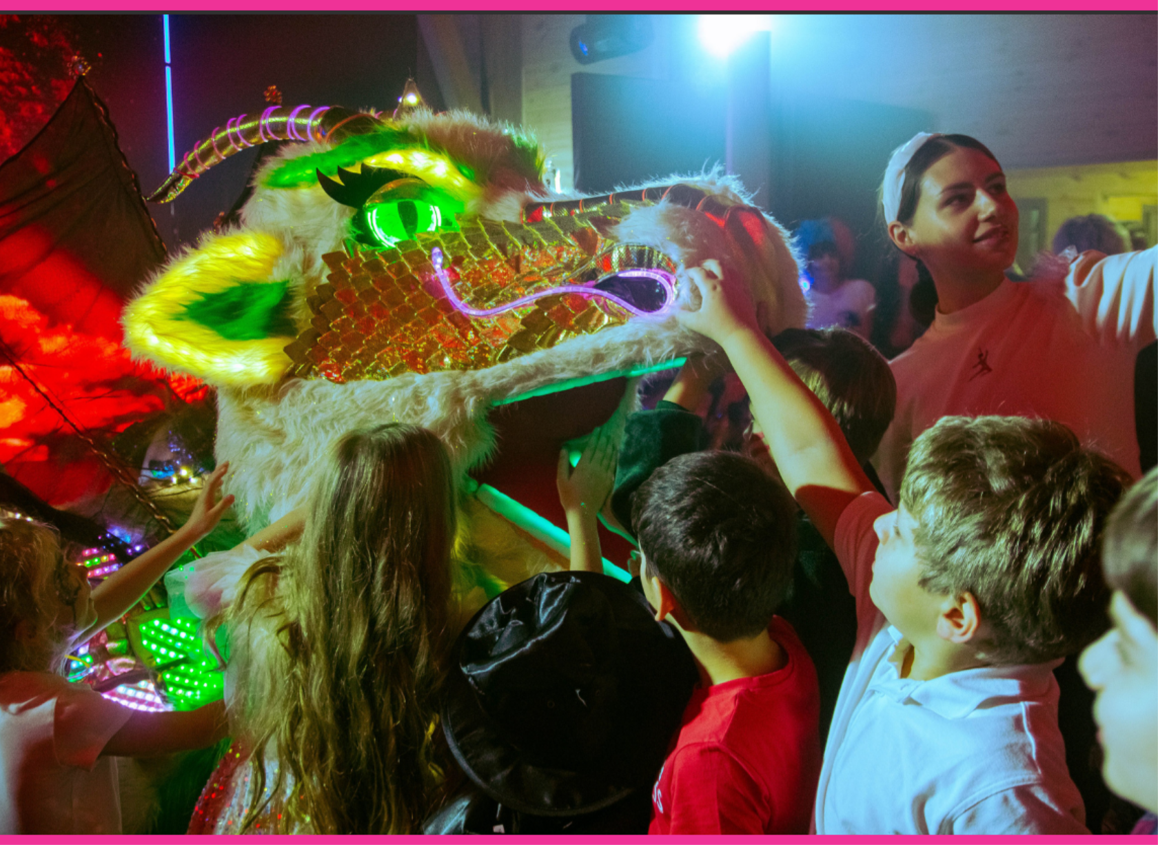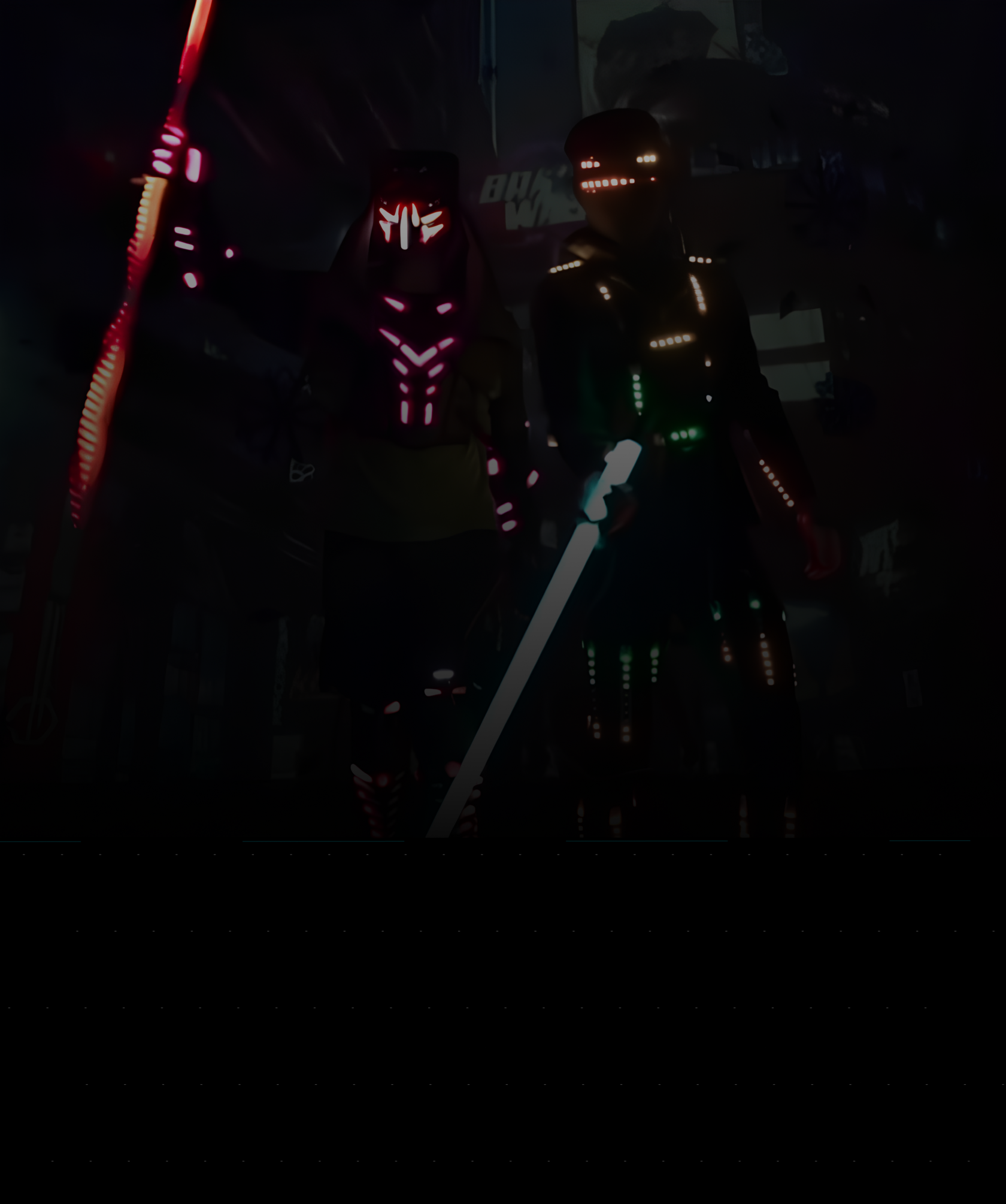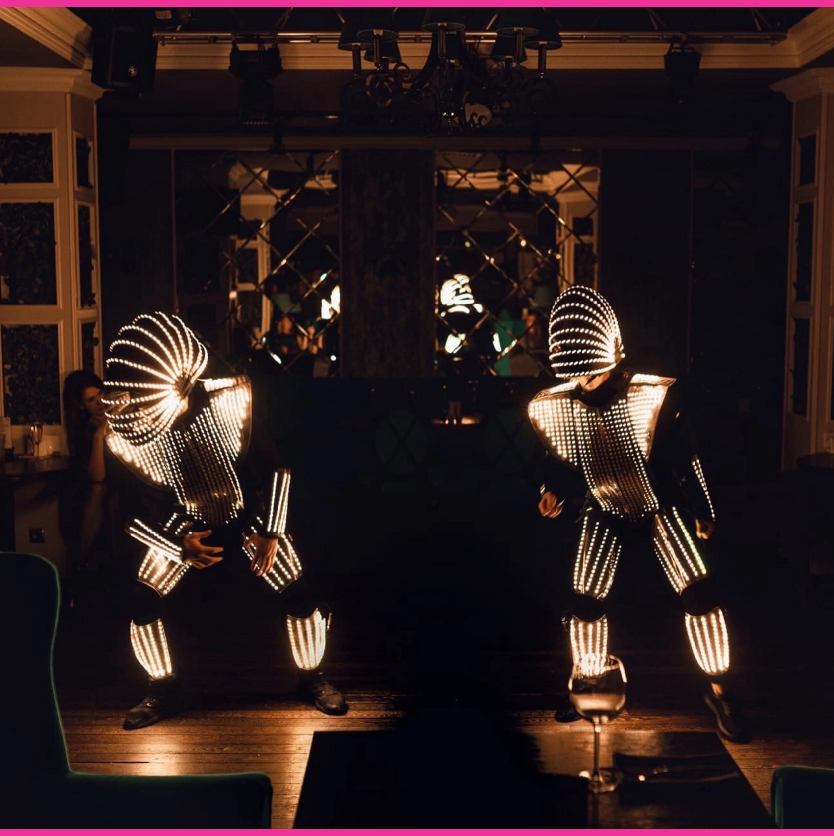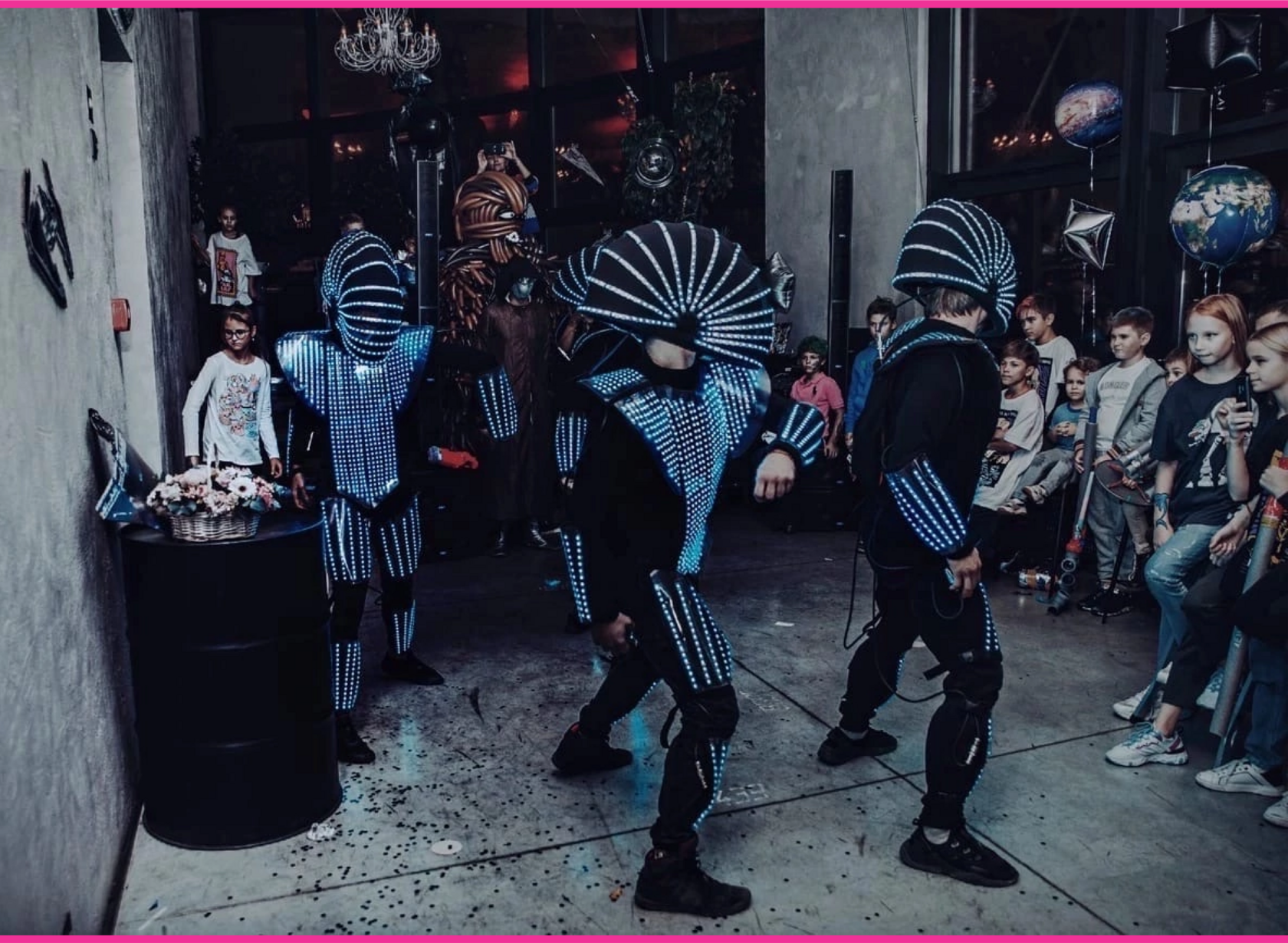 Интерактивное шоу включает танцы, трюки и акробатику, костюмы участников оснащены LED-светильниками, которые делают каждое движение более экспрессивным. Световые эффекты синхронизируются с движениями, создавая незабываемую атмосферу.